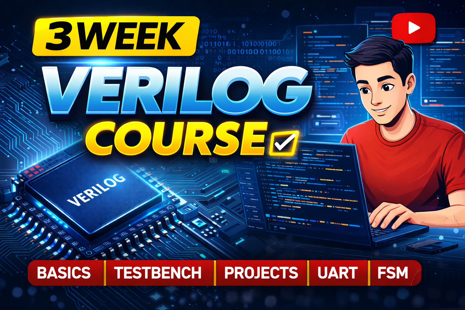This 3-Week Verilog HDL Course is designed to build strong foundations in digital system design and hardware description using Verilog. The course focuses on hands-on coding, simulation, debugging, and real-world design practices used in VLSI and FPGA industries.